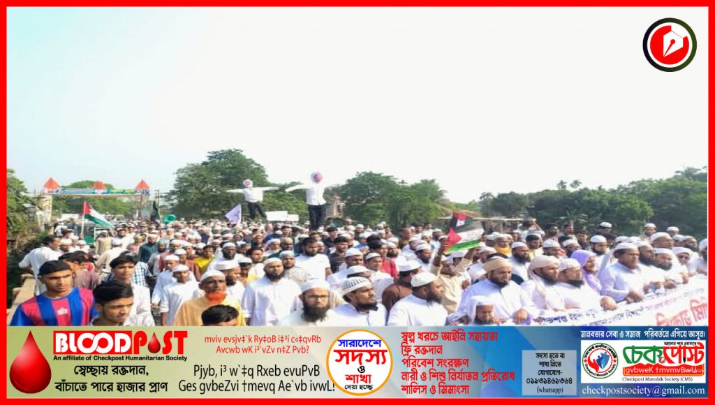 ইসরায়েল কর্তৃক ফিলিস্তিনের বর্বরোচিত গণহত্যার প্রতিবাদে ঈশ্বরগঞ্জে বিক্ষোভ ও প্রতিবাদ মিছিল