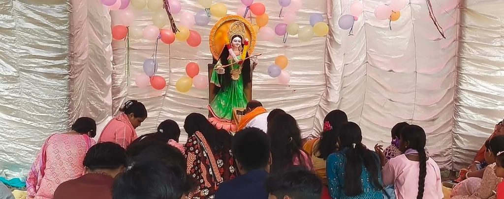 উৎসবমুখর পরিবেশে আমিনুর রহমান কলেজে সরস্বতী পূজা উদযাপন