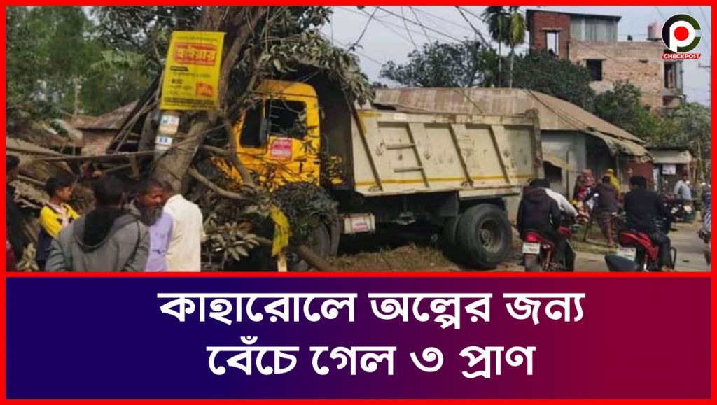 কাহারোলে অল্পের জন্য বেঁচে গেল ৩ প্রাণ