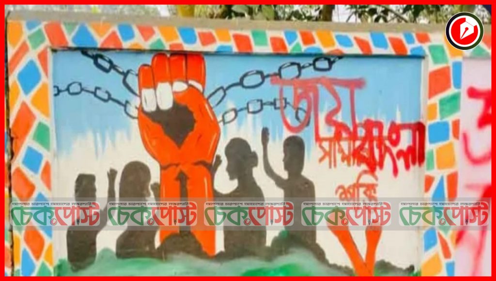 চিরিরবন্দর ছাত্র আন্দোলনের গ্রাফিতির ওপর ‘জয় বাংলা’ লিখে দেওয়ার ঘটনায় উত্তেজনা