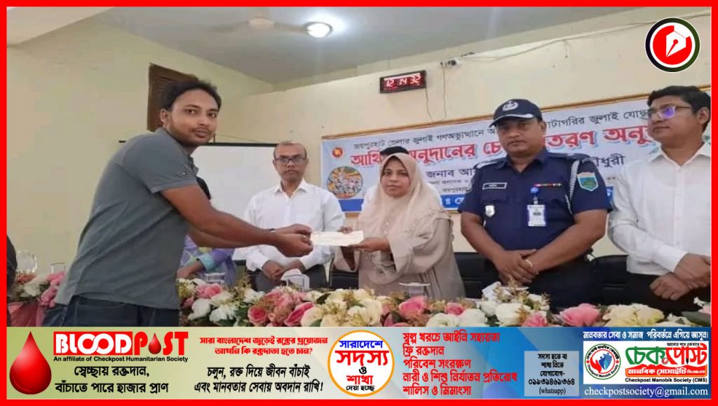 জয়পুরহাটে জুলাই গণঅভ্যুত্থানে আহত ৭৯ জন জুলাই যোদ্ধার মাঝে ৭৯ লাখ টাকার আর্থিক অনুদানের চেক বিতরণ করা হয়েছে।