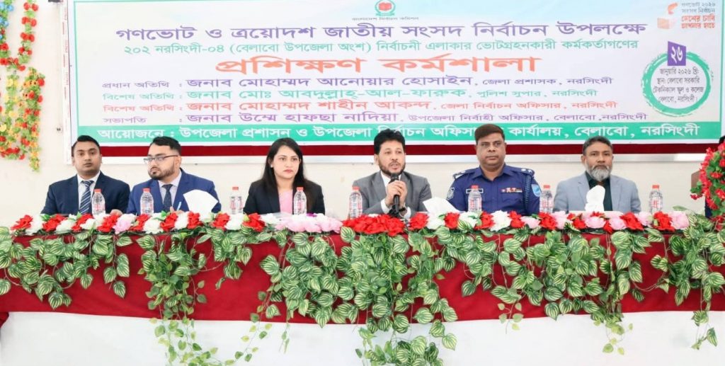 বেলাবোতে জাতীয় সংসদ নির্বাচন উপলক্ষে ভোটগ্রহণকারীদের প্রশিক্ষণ অনুষ্ঠিত