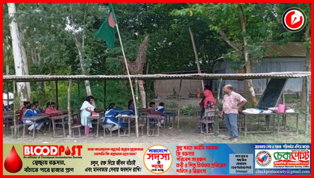 যমুনার ভয়ে বিদ্যালয় ভাঙার পর আকাশের নিচে পাঠদান