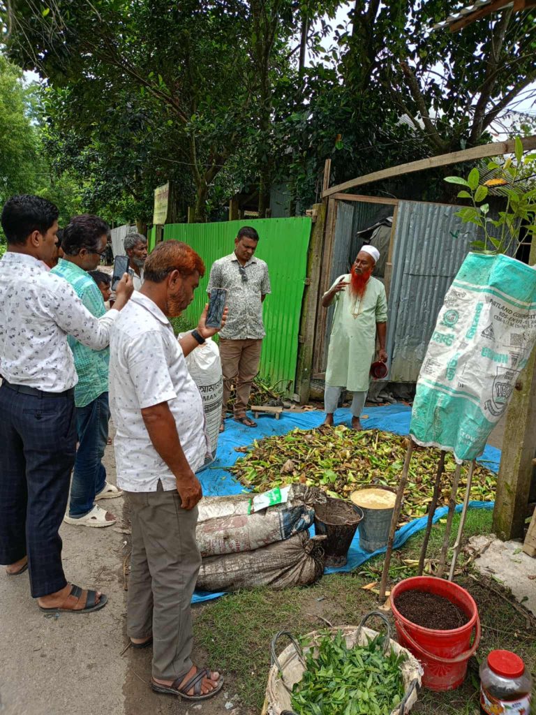 বৃহস্পতিবার (১৪ আগস্ট) দুপুরে বুল্লাবাজার সংলগ্ন নিজ বাড়িতে বিভিন্ন জৈব উপাদানের সমন্বয়ে সার প্রস্তুত করা হয়। উপাদানগুলোর মধ্যে রয়েছে, গোবর, কাঠের গুঁড়া, খৈল, চিটাগুড়, চায়ের পাতা, দেশি মুরগির বিষ্ঠা, নিমপাতা, কচুরিপানা, এবং ট্রাইকোডার্মা পাউডারসহ নানা প্রাকৃতিক উপকরণ।