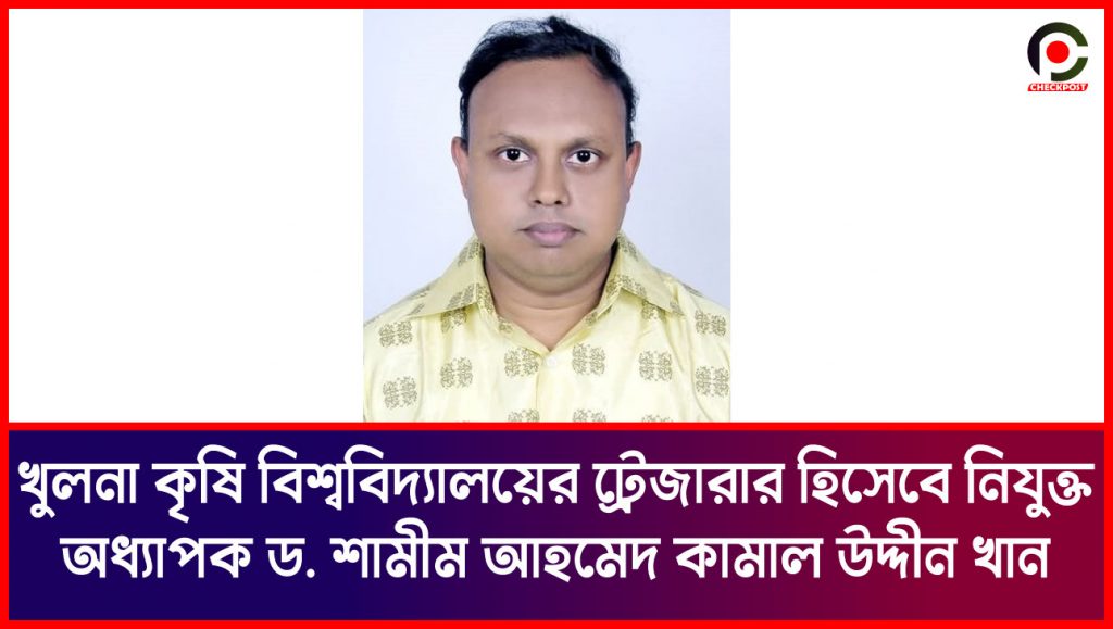খুলনা কৃষি বিশ্ববিদ্যালয়ের ট্রেজারার হিসেবে নিযুক্ত অধ্যাপক ড. শামীম আহমেদ কামাল উদ্দীন খান