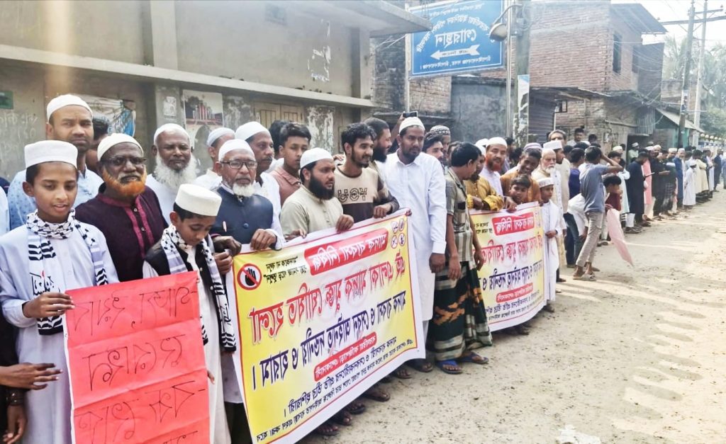 চাঁপাইনবাবগঞ্জে মাদক ব্যবসা বন্ধের দাবিতে বারোঘরিয়া গ্রামবাসীর মানববন্ধন