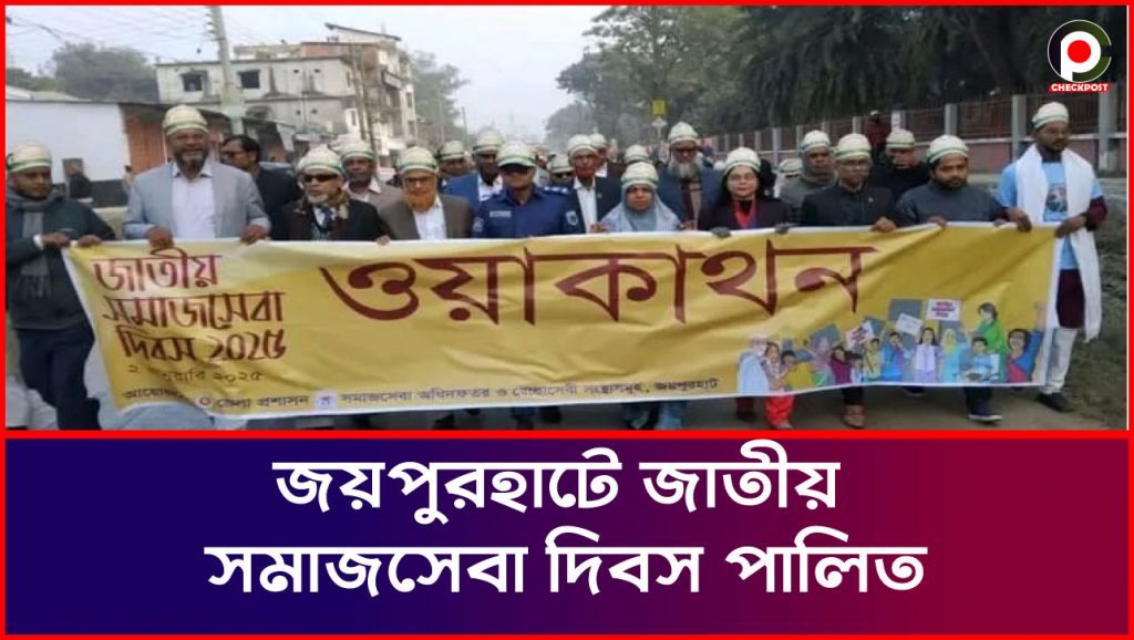 ‘নেই পাশে কেউ যার, সমাজসেবা আছে তার’—এই প্রতিপাদ্যকে সামনে রেখে জয়পুরহাটে বর্ণাঢ্য কর্মসূচির মধ্য দিয়ে জাতীয় সমাজসেবা দিবস পালিত হয়েছে।