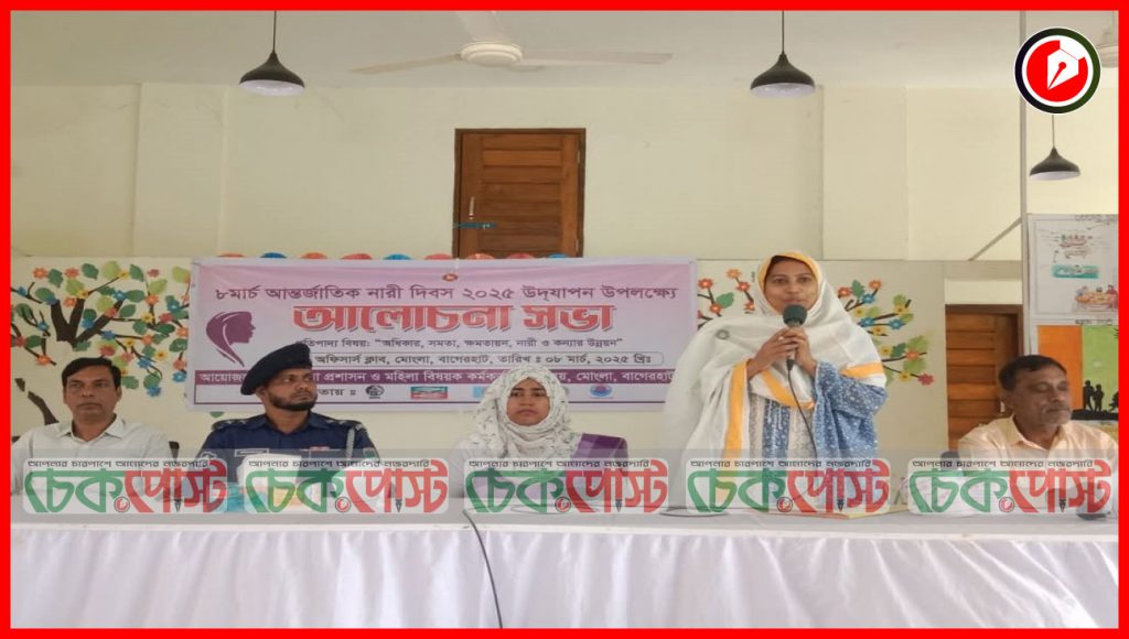 পরে উপজেলা পরিষদ অডিটোরিয়ামে একটি আলোচনা সভা অনুষ্ঠিত হয়। মোংলা উপজেলা মহিলা বিষয়ক কর্মকর্তা ইশরৎ জাহানর সভাপতিত্বে প্রধান অতিথি হিসেবে বক্তব্য রাখেন উপজেলা নির্বাহী কর্মকর্তা শারমিন আক্তার সুমী।