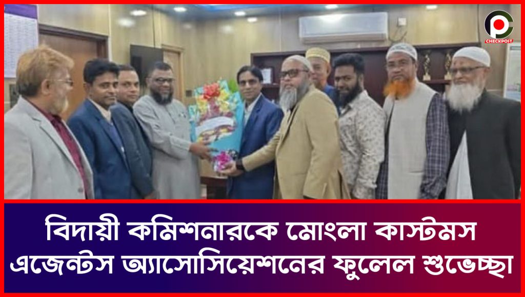 বিদায়ী কমিশনারকে মোংলা কাস্টমস এজেন্টস অ্যাসোসিয়েশনের ফুলেল শুভেচ্ছা