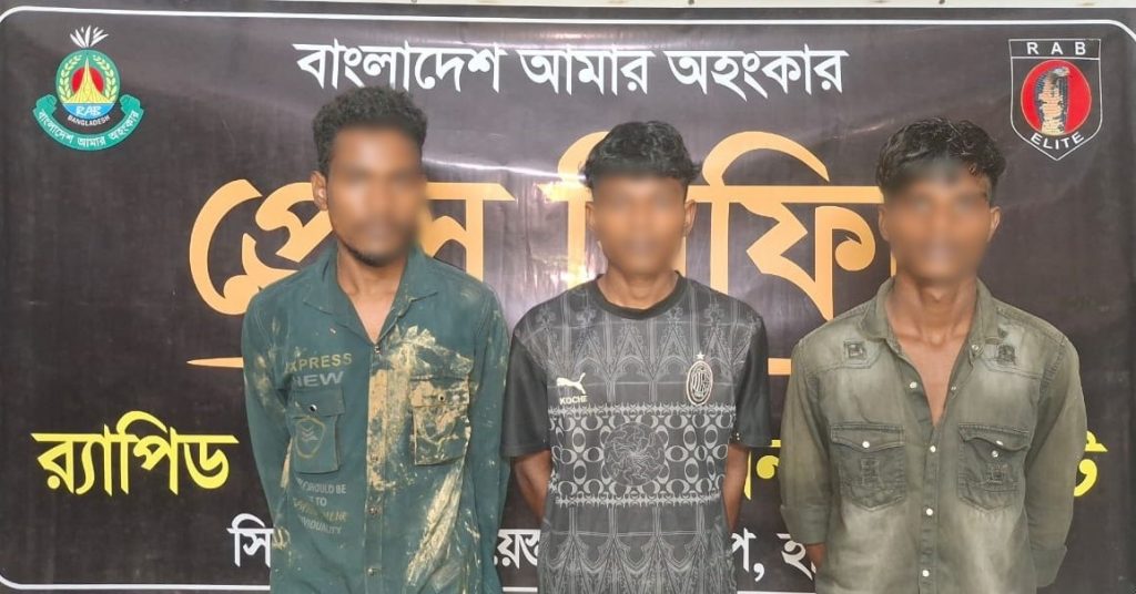 গ্রেফতারকৃতরা হলো, অমিত কৃষ্ণ গোয়ালা, সুকন তাতী ও রুহিত রিকিয়াশন, তিনজনই চুনারুঘাটের চাঁনপুর এলাকার বাসিন্দা।