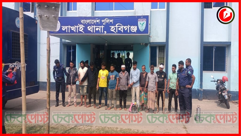 লাখাইয়ে ফুলবাড়িয়া গ্রামে দুপক্ষের সংঘর্ষে আহত ২০ আটক ১১ জন।