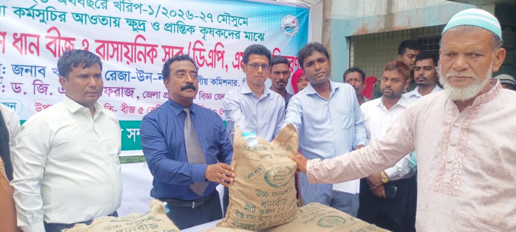 এর আগে বিভাগীয় কমিশনার লাখাইয়ে প্রান্তিক কৃষকদের মাঝে বিনামূল্যে আউশ ধানের বীজ ও সার বিতরণ কর্মসূচির উদ্বোধন