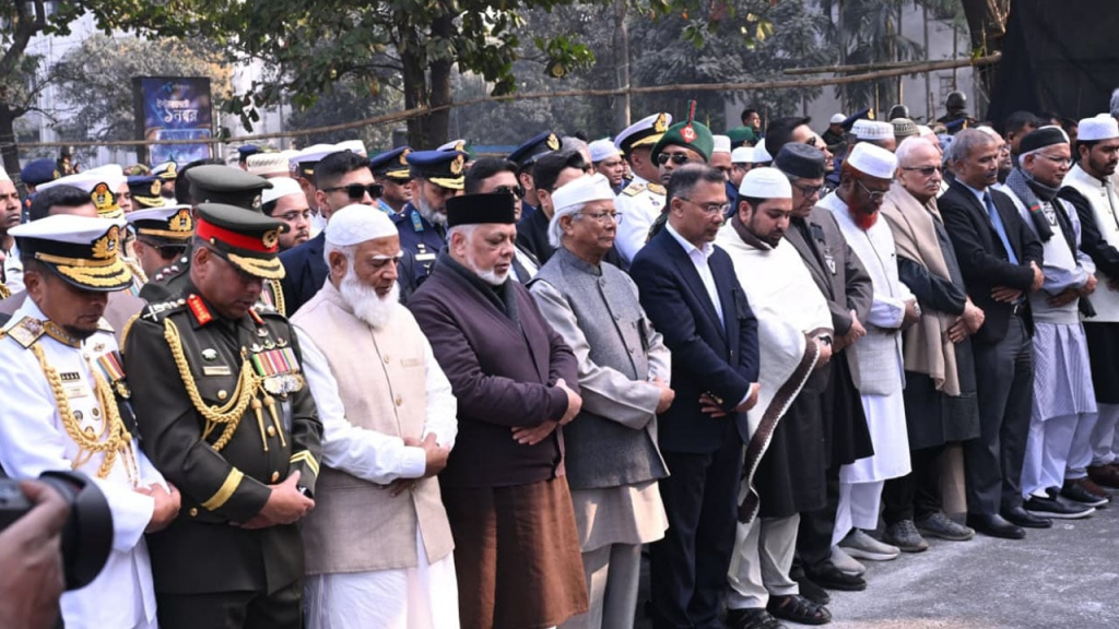জানাজায় প্রধান উপদেষ্টা ড. মুহাম্মদ ইউনূস, উপদেষ্টা পরিষদের সদস্যরা, তিন বাহিনীর প্রধান, বিএনপি মহাসচিব মির্জা ফখরুল ইসলাম আলমগীরসহ দলের শীর্ষ নেতারা এবং বিদেশি কূটনৈতিকরা উপস্থিত ছিলেন।