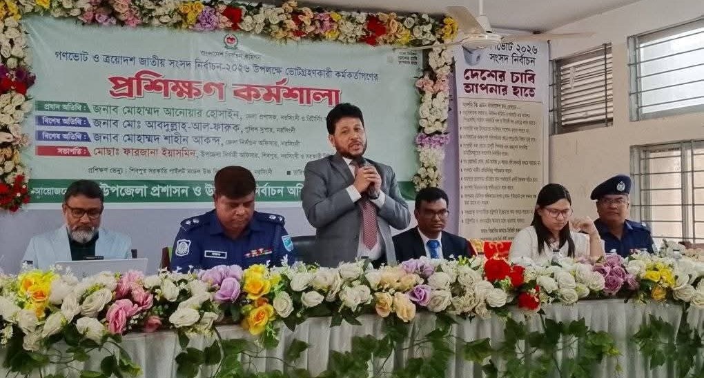 নরসিংদীর শিবপুরে ত্রয়োদশ জাতীয় সংসদ নির্বাচন-২০২৬ ও গণভোটের প্রস্তুতি হিসেবে ভোটগ্রহণকারী কর্মকর্তাদের প্রশিক্ষণ কর্মশালা অনুষ্ঠিত হয়েছে। মঙ্গলবার (২৭ জানুয়ারি) সকাল