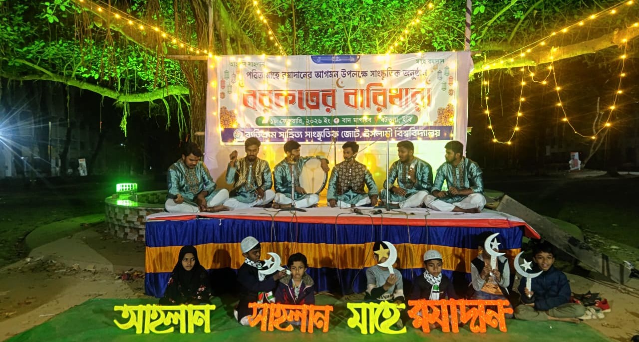 ইসলামী বিশ্ববিদ্যালয়ে (ইবি) মাহে রমাদানকে স্বাগত জানিয়ে ‘ব্যতিক্রম সাহিত্য সাংস্কৃতিক জোট’ -এর উদ্যোগে ‘বরকতের বারিধারা’ সাংস্কৃতিক অনুষ্ঠান আয়োজন করা হয়েছে।