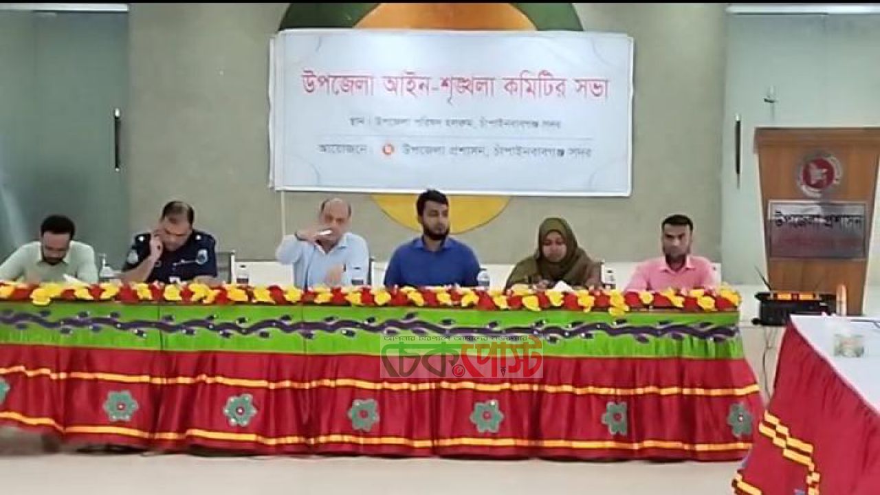 চাঁপাইনবাবগঞ্জ সদর উপজেলায় উপজেলা প্রশাসনের আয়োজনে আইন শৃঙ্খলা কমিটির মাসিক সভা অনুষ্ঠিত হয়েছে। সোমবার (২৭ এপ্রিল) সকাল ১১টায় উপজেলা পরিষদ হলরুমে এ সভা অনুষ্ঠিত হয়।