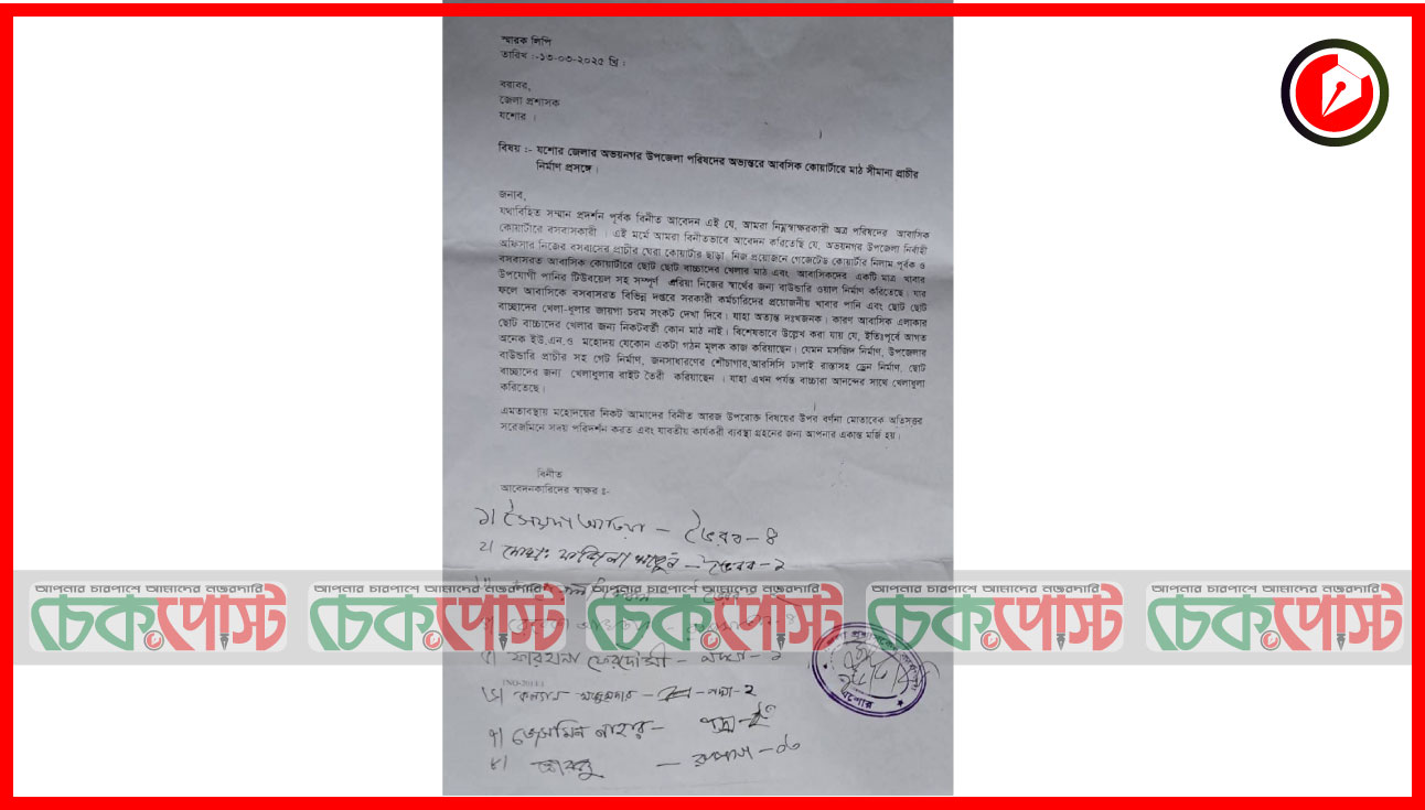 যশোরের অভয়নগর উপজেলা নির্বাহী কর্মকর্তা (ইউএনও) জয়দেব চক্রবর্তীর বিরুদ্ধে যশোর জেলা প্রশাসক বরাবর স্মারক লিপি প্রদান করেছেন উপজেলা পরিষদের আবাসিক এলাকার বাসিন্দারা। গত বৃহস্পতিবার (১৩ মার্চ) স্বাক্ষরিত স্মারক লিপিটি রবিবার (১৬ মার্চ) জেলা প্রশাসকের কার্যালয়ে জমা দেওয়া হয়।