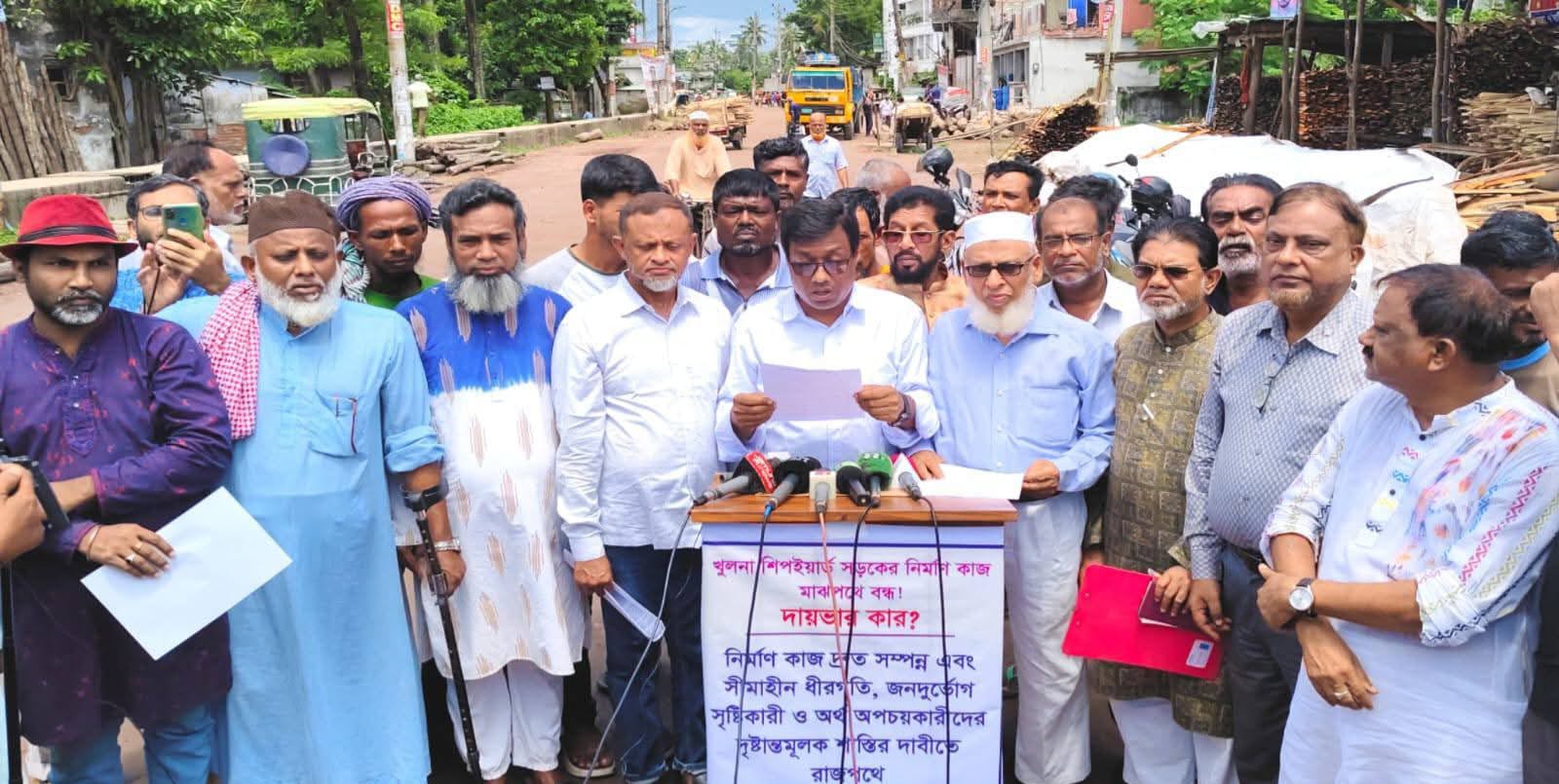 খুলনার অন্যতম গুরুত্বপূর্ণ প্রবেশপথ শিপইয়ার্ড সড়কের নির্মাণকাজ দীর্ঘদিনেও শেষ হয়নি। এর প্রতিবাদে আজ (২৮ আগস্ট) সকাল ১১টায় দাদা ম্যাচ কোম্পানির সামনে সড়কেই সংবাদ সম্মেলনের আয়োজন করে “খুলনা নাগরিক সমাজ”।