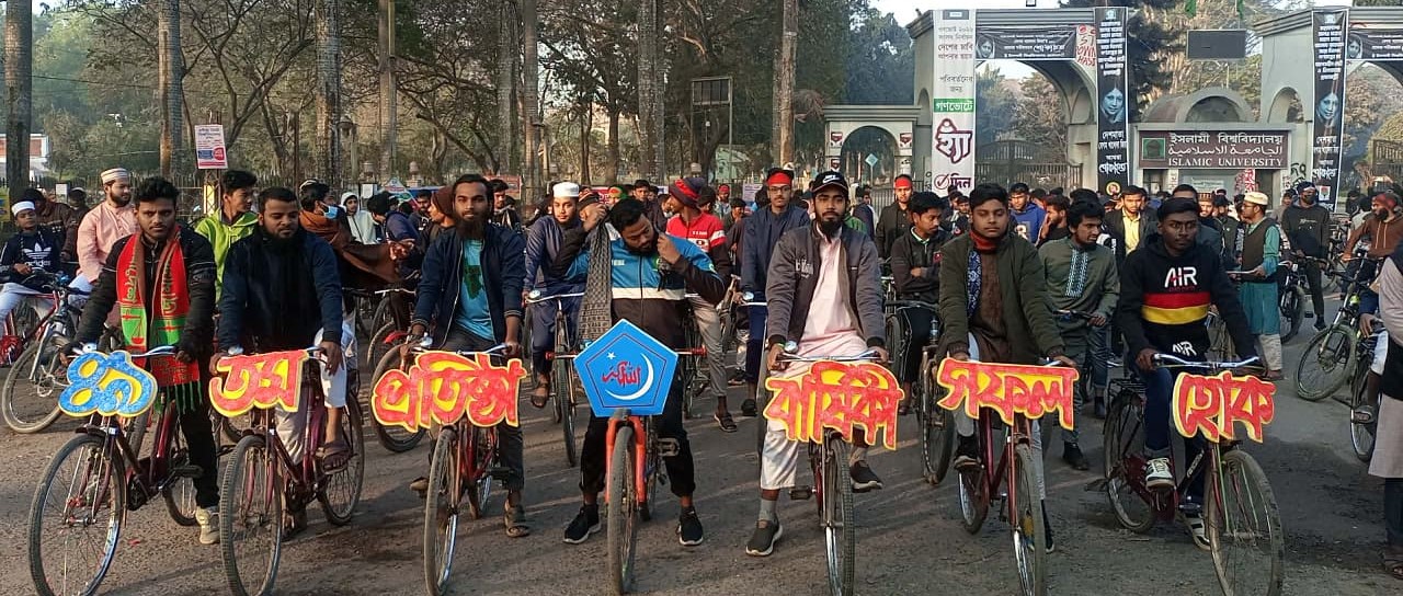 বাংলাদেশ ইসলামী ছাত্রশিবিরের ৪৯তম প্রতিষ্ঠাবার্ষিকী উপলক্ষে বর্ণাঢ্য সাইকেল র্যালির আয়োজন করেছে ইসলামী বিশ্ববিদ্যালয় (ইবি) শাখা ছাত্রশিবির।
