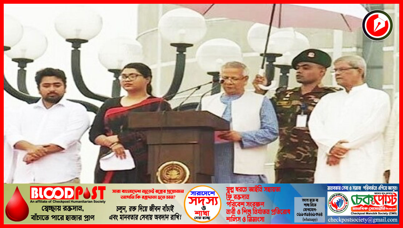 ২০। যেহেতু জনগণের দাবি অনুযায়ী এরপর অবৈধ দ্বাদশ জাতীয় সংসদ ভেঙে দেওয়া হয় এবং সংবিধানের ১০৬ অনুচ্ছেদ অনুসারে সুপ্রীম কোর্টের মতামতের আলোকে সাংবিধানিকভাবে ড. মুহাম্মদ ইউনূসের নেতৃত্বে ৮ আগস্ট ২০২৪ তারিখে একটি অন্তর্বতীকালীন সরকার গঠন করা হয়;