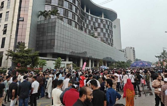 “হঠাৎ করেই ভাঙচুর শুরু হয়। রাস্তা থেকে কয়েকশ বিক্ষোভকারী ভবনের দিকে ইটপাটকেল ছুড়ছে। এতে ভবনের বিভিন্ন অংশের কাঁচ ভেঙে গেছে। অফিস ছুটি হয়ে গেলেও আমরা কেউ নিরাপত্তার কারণে ভবন থেকে বের হতে পারছি না।”