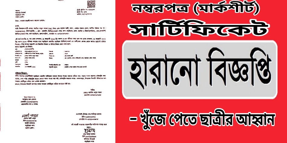 নাটোরের বড়াইগ্রাম উপজেলার লক্ষীকোল বাজার এলাকায় অসাবধানতাবশত হারিয়ে গেছে এক তরুণীর বহু কষ্টে অর্জিত এসএসসি পরীক্ষার মূল নম্বরপত্র (মার্কশিট)। হারিয়ে যাওয়া এই গুরুত্বপূর্ণ শিক্ষাসনদ ফিরে পেতে হৃদয়বিদারক আবেদন জানিয়েছেন মোছাঃ শারমিন খাতুন সাইমা (২৬)।