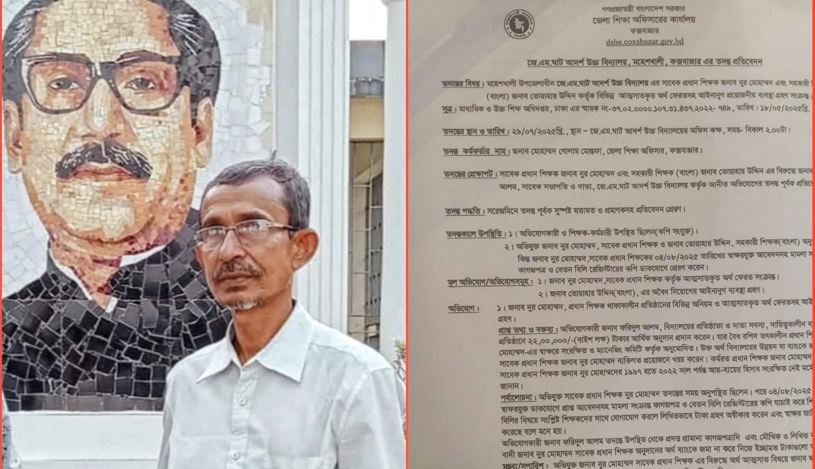 কক্সবাজারের মহেশখালী উপজেলার জলেয়ারমার ঘাট আদর্শ উচ্চ বিদ্যালয়ের সাবেক প্রধান শিক্ষক নুর মোহাম্মদের বিরুদ্ধে বিদ্যালয়ের ২২ লাখ টাকা আত্মসাতের অভিযোগ তদন্তে প্রমাণিত হয়েছে। জেলা শিক্ষা অফিসারের কার্যালয়, কক্সবাজার কর্তৃক পরিচালিত তদন্তে এ তথ্য উঠে এসেছে।