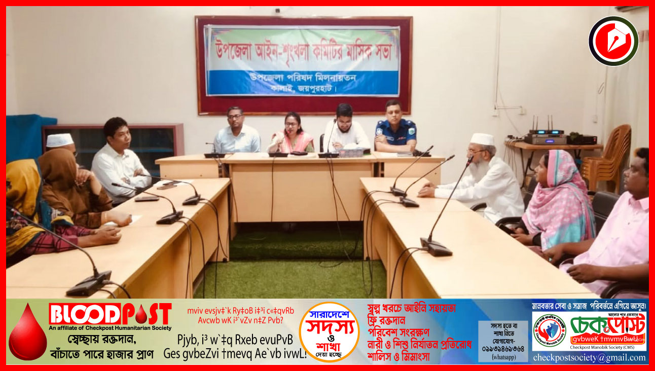 জয়পুরহাটের কালাই উপজেলায় আইন-শৃঙ্খলা পরিস্থিতি নিয়ে আলোচনা এবং বাংলা নববর্ষ ১৪৩২ উদযাপন উপলক্ষে প্রস্তুতি গ্রহণে পৃথক দুটি সভা অনুষ্ঠিত হয়েছে। মঙ্গলবার (৮ এপ্রিল) সকাল ১০টা ৩০ মিনিটে উপজেলা পরিষদ মিলনায়তনে এ দুটি সভার আয়োজন করে উপজেলা প্রশাসন।