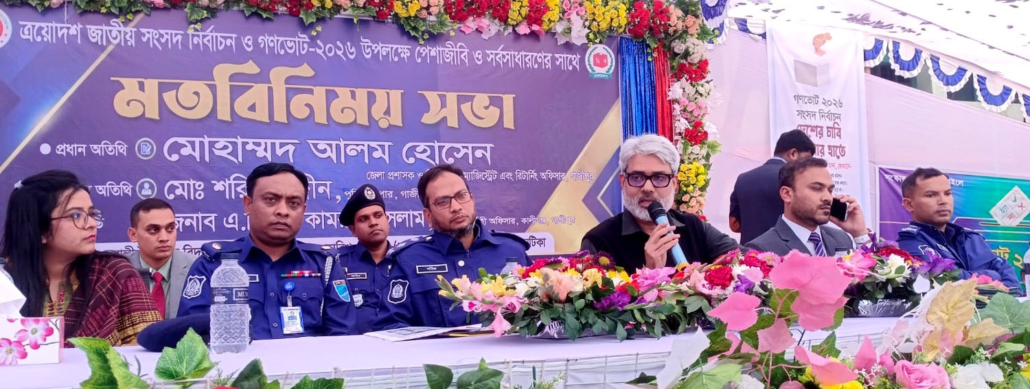 গাজীপুরের কালীগঞ্জে আসন্ন ত্রয়োদশ জাতীয় সংসদ নির্বাচন ও গণভোট উপলক্ষে পেশাজীবী ও সর্বসাধারণের অংশগ্রহণে এক মতবিনিময় সভা অনুষ্ঠিত হয়েছে।