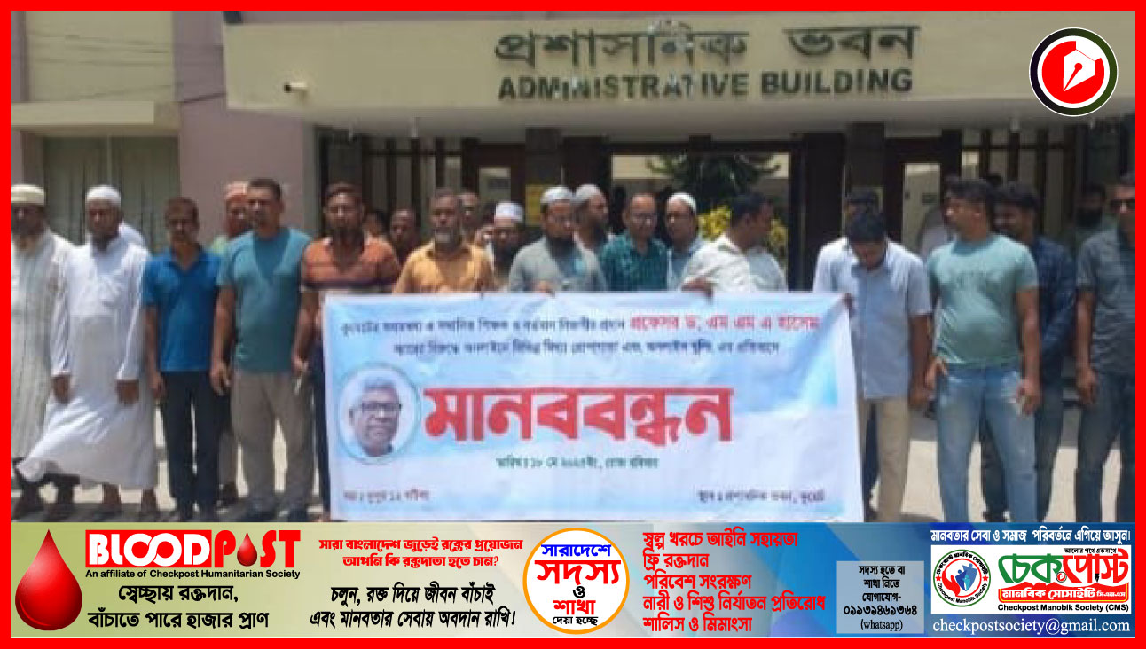 খুলনা প্রকৌশল ও প্রযুক্তি বিশ্ববিদ্যালয় (কুয়েট)-এর সিএসই বিভাগের বিভাগীয় প্রধান প্রফেসর ড. এম এম এ হাশেমের বিরুদ্ধে চলমান মিথ্যা প্রপাগান্ডা ও সাইবার বুলিংয়ের প্রতিবাদে মানববন্ধন করেছে প্রাক্তন শিক্ষার্থী, কর্মকর্তা ও কর্মচারীরা।