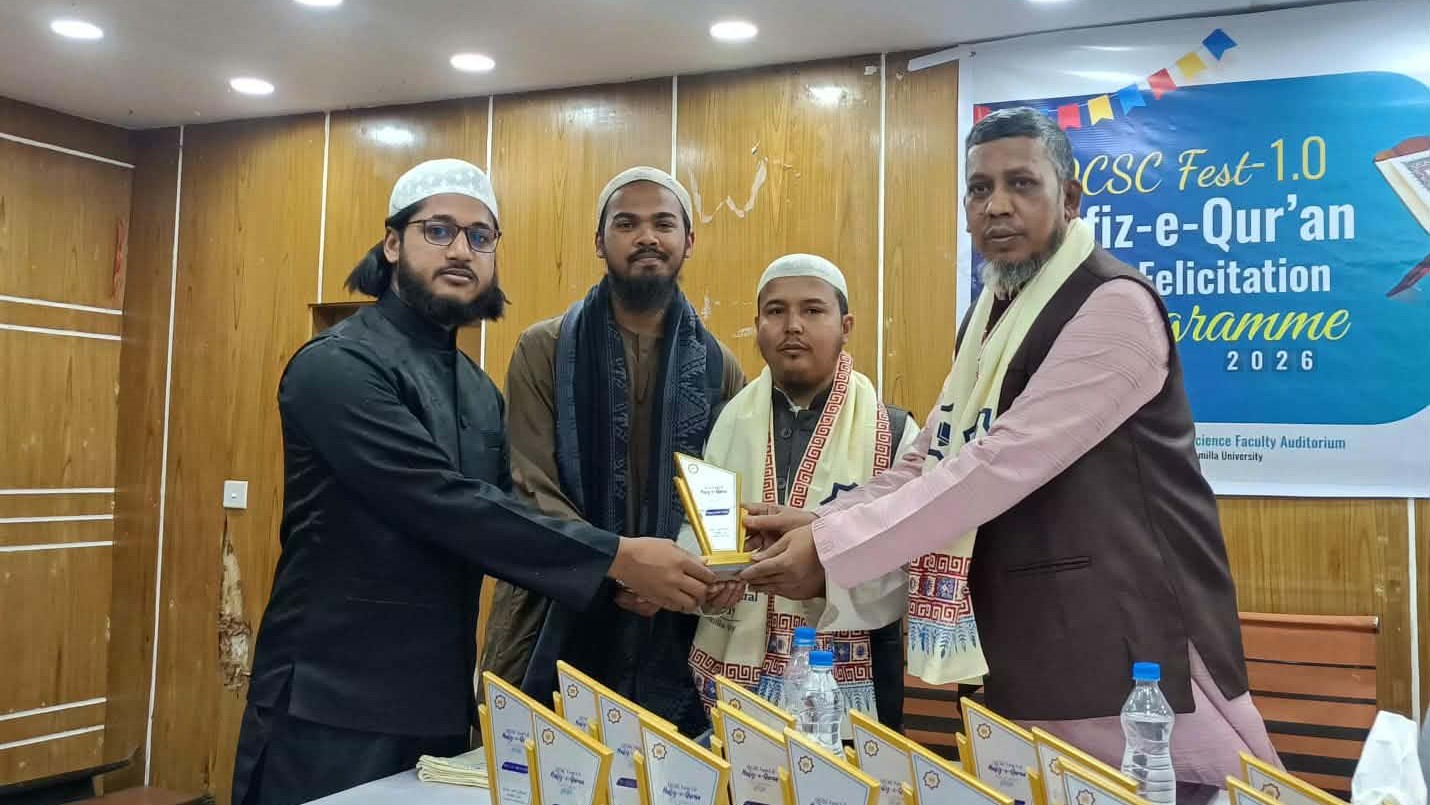 কুমিল্লা বিশ্ববিদ্যালয় (কুবি) ক্যাম্পাসে কুরআন ও সাংস্কৃতিক চর্চা সম্প্রসারণের লক্ষ্যে কুরআন এন্ড কালচারাল স্টাডি ক্লাবের উদ্যোগে ‘কিউসিএসসি ফেস্ট-১.০: হাফেজ-ই-কুরআন সংবর্ধনা ২০২৬’ অনুষ্ঠিত হয়েছে।