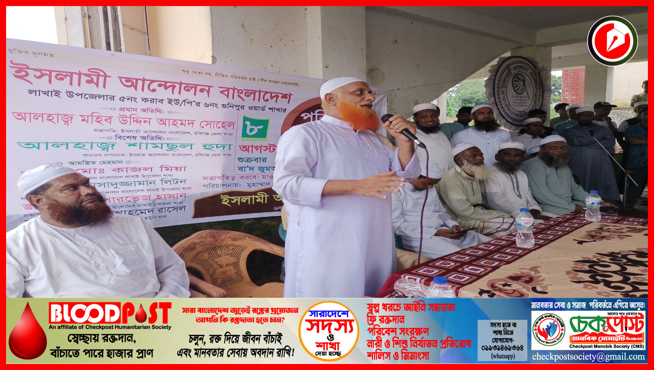 শুক্রবার (৮ আগস্ট) বাদ জুমা ইসলামী আন্দোলন বাংলাদেশ লাখাই উপজেলার করাব ইউনিয়নের গুনিপুর ৮নং ওয়ার্ড কমিটির পরিচিত সভায় প্রধান অতিথির বক্তব্যে তিনি এ মন্তব্য করেন।