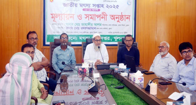 খুলনায় জাতীয় মৎস্য সপ্তাহ ২০২৫-এর মূল্যায়ন ও সমাপনী অনুষ্ঠান আজ শনিবার (২৪ আগস্ট) সকালে মৎস্য অধিদপ্তরের খুলনা বিভাগীয় কার্যালয়ের সম্মেলন কক্ষে অনুষ্ঠিত হয়।