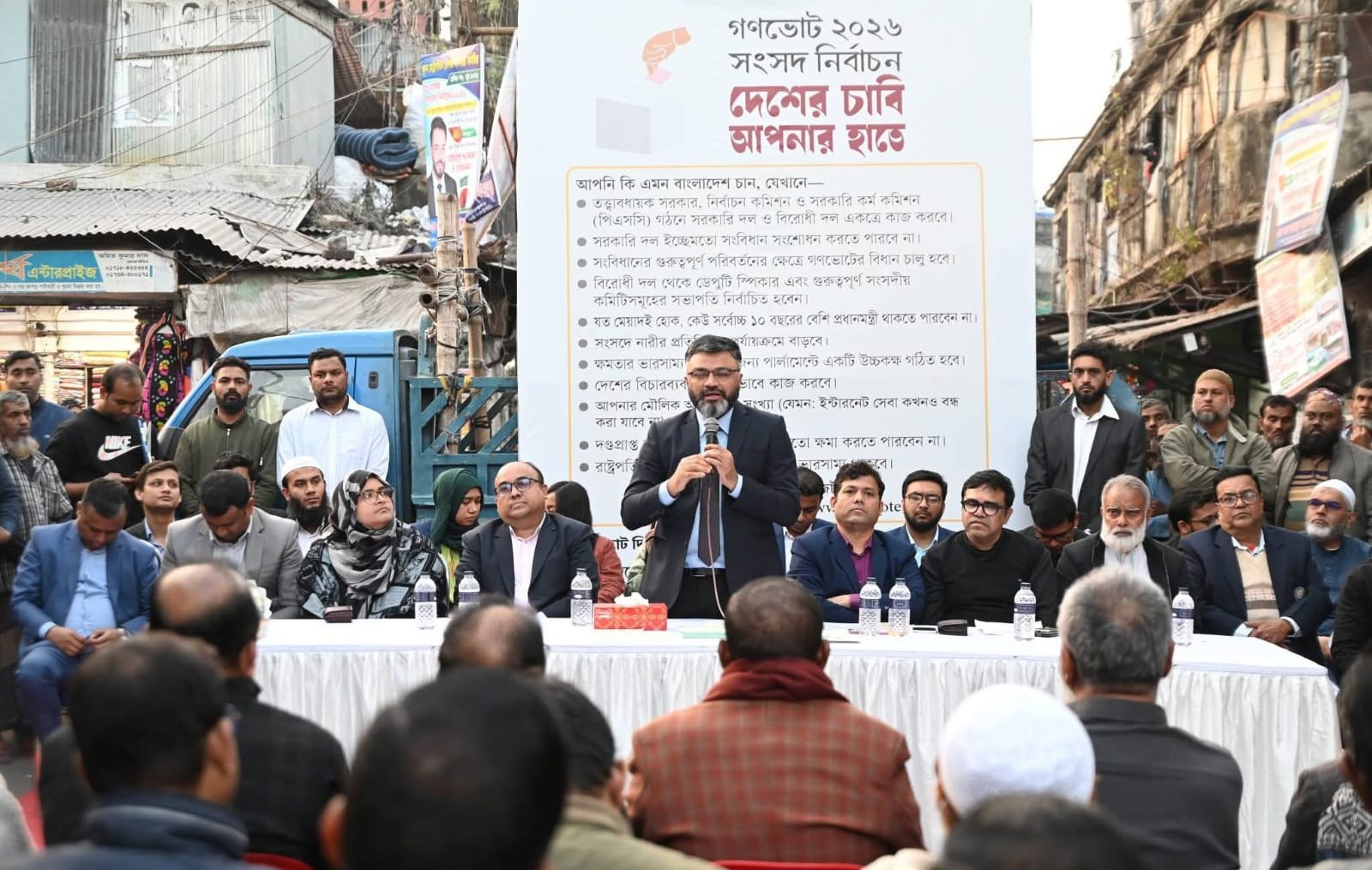 বৈঠকের মূল উদ্দেশ্য ছিল ভোটপ্রক্রিয়া ও গণভোট ২০২৬-এ অংশগ্রহণ সম্পর্কে জনগণকে সচেতন করা। এই সময় উপস্থিত ছিলেন জেলা প্রশাসনের উপ-পরিচালক স্থানীয় সরকার, মোঃ আরিফুল ইসলাম, অতিরিক্ত জেলা প্রশাসক (শিক্ষা ও আইসিটি), মিস কানিজ ফাতেমা লিজা, অতিরিক্ত জেলা ম্যাজিস্ট্রেট, নুরুল হাই মোহাম্মদ আনাছ, অতিরিক্ত জেলা প্রশাসক (রাজস্ব), মোঃ আক্তার হোসেন, অতিরিক্ত জেলা প্রশাসক (এলএ), দীপংকর দাস।