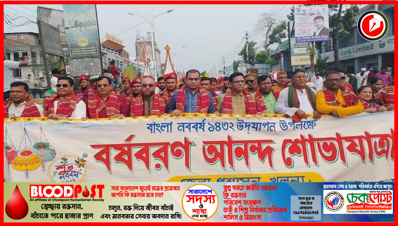 সকালে খুলনা রেলওয়ে স্টেশন প্রাঙ্গণ থেকে একটি বর্ণাঢ্য আনন্দ শোভাযাত্রা বের হয়, যা নগরীর বিভিন্ন সড়ক প্রদক্ষিণ করে শহীদ হাদিস পার্কে গিয়ে শেষ হয়। শোভাযাত্রায় সরকারি-বেসরকারি দপ্তরের কর্মকর্তা, শিক্ষক-শিক্ষার্থী, বিভিন্ন সামাজিক-সাংস্কৃতিক সংগঠনের প্রতিনিধি ও সাধারণ মানুষ স্বতঃস্ফূর্তভাবে অংশ নেন।