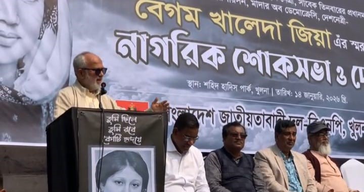 বুধবার (১৪ জানুয়ারি) সকাল সাড়ে ১১টায় খুলনার ঐতিহাসিক শহীদ হাদিস পার্কে খুলনা মহানগর বিএনপির উদ্যোগে আয়োজিত নাগরিক শোকসভা ও দোয়া মাহফিলে বক্তারা এসব কথা বলেন।