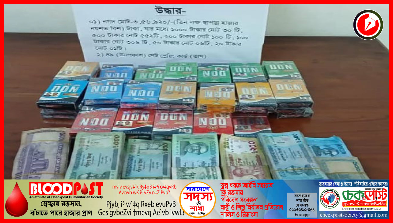 খুলনার দৌলতপুরে সেনাবাহিনী ও খুলনা মেট্রোপলিটন পুলিশের (কেএমপি) যৌথ অভিযানে জুয়া খেলার সময় ৭ জন জুয়ারিকে আটক করা হয়েছে। অভিযানে জব্দ করা হয়েছে নগদ ৩ লাখ ৫৬ হাজার ৯২০ টাকা ও জুয়া খেলায় ব্যবহৃত ৪৯ সেট তাস।