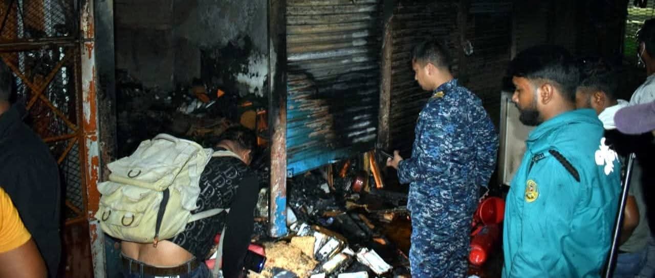 খুলনা নগরীর বায়তুন নুর শপিং সেন্টারে ভয়াবহ আগুন