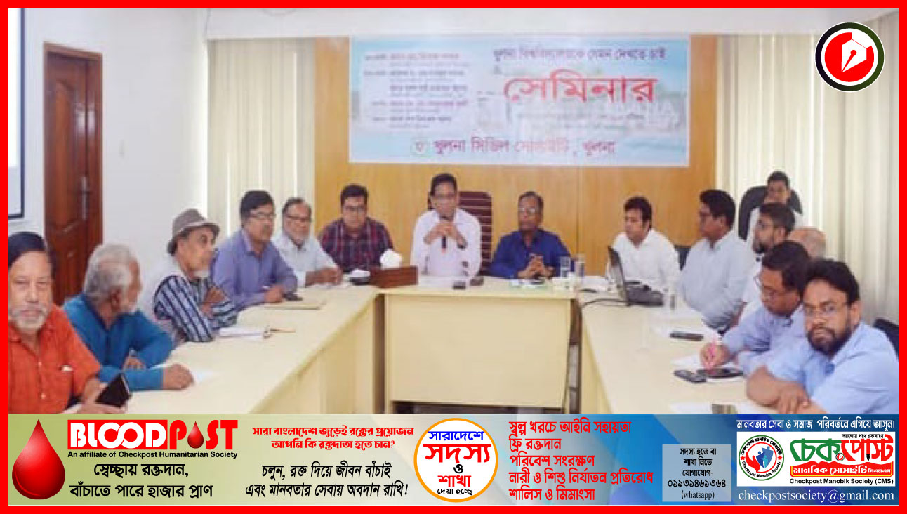 “খুলনা বিশ্ববিদ্যালয়কে যেমন দেখতে চাই”—এই শীর্ষক সেমিনার আজ ২৭ এপ্রিল সকালে খুলনা সিটি কর্পোরেশনের সভাকক্ষে অনুষ্ঠিত হয়েছে। সেমিনারে প্রধান অতিথি হিসেবে উপস্থিত ছিলেন খুলনা বিভাগীয় কমিশনার ও সিটি কর্পোরেশনের প্রশাসক মো. ফিরোজ সরকার।