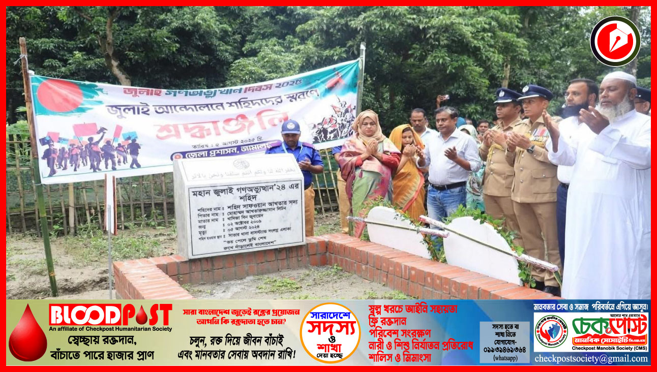 জুলাই গণঅভ্যুত্থান দিবস-২০২৫ উপলক্ষে জামালপুরে শ্রদ্ধার সঙ্গে স্মরণ করা হয়েছে শহিদ সাফওয়ান আখতার সদ্য'কে। মঙ্গলবার (৫ আগস্ট) সকাল সাড়ে ১১টায় জামালপুর জেলা প্রশাসন ও জেলা পুলিশের যৌথ উদ্যোগে সদর উপজেলার শরীফপুর ইউনিয়নের রঘুনাথপুর গ্রামে তাঁর সমাধিতে পুষ্পস্তবক অর্পণ করা হয়।