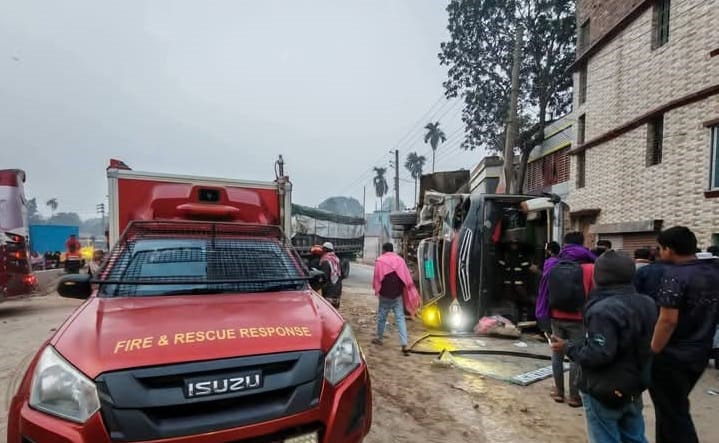 প্রত্যক্ষদর্শী ও পুলিশ সূত্রে জানা গেছে, চট্টগ্রাম থেকে কুড়িগ্রামগামী “মামুন এক্সপ্রেস” (ঢাকা মেট্রো-ব ১৫-৮৫৪৫) নামের বাসটি পান্থাপাড়া হ্যামকো ব্যাটারি সংলগ্ন এলাকায় পৌঁছালে হঠাৎ নিয়ন্ত্রণ হারিয়ে সড়কের পাশে উল্টে যায়। এতে বাসের ভেতরে থাকা যাত্রীদের মধ্যে চরম আতঙ্ক ছড়িয়ে পড়ে।