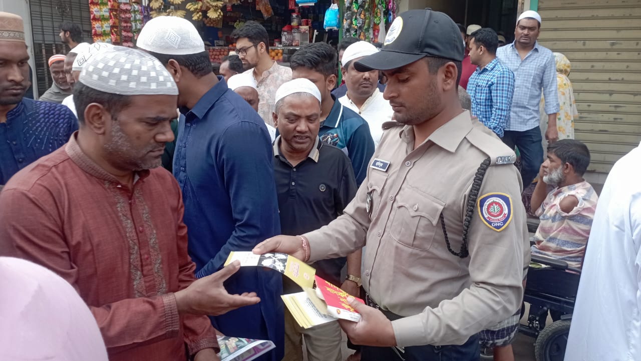 চাঁপাইনবাবগঞ্জে মাদকবিরোধী সচেতনতা বৃদ্ধির লক্ষ্যে জনগণের মাঝে লিফলেট বিতরণ করেছে মাদকদ্রব্য নিয়ন্ত্রণ অধিদপ্তর (ডিএনসি)। শুক্রবার (৬ মার্চ ২০২৬) দুপুর ২টার দিকে চাঁপাইনবাবগঞ্জ সদর মডেল থানাধীন ফকিরপাড়া জামে মসজিদ এলাকায় জেলা মাদকদ্রব্য নিয়ন্ত্রণ অধিদপ্তরের উদ্যোগে এ কর্মসূচি অনুষ্ঠিত হয়।মাদক একটি ভয়াবহ সামাজিক ব্যাধি। এটি শুধু একজন ব্যক্তির জীবনই ধ্বংস করে না, বরং একটি পরিবার, সমাজ এবং দেশের ভবিষ্যৎকেও অন্ধকারের দিকে ঠেলে দেয়। বিশেষ করে আমাদের তরুণ প্রজন্ম আজ সবচেয়ে বেশি ঝুঁকির মধ্যে রয়েছে। তাই মাদক প্রতিরোধে শুধু আইনশৃঙ্খলা বাহিনীর উদ্যোগই যথেষ্ট নয়—এক্ষেত্রে সমাজের সর্বস্তরের মানুষের সচেতনতা ও সহযোগিতা অত্যন্ত জরুরি। এই মাদকবিরোধী লিফলেট বিতরণ কর্মসূচির মূল উদ্দেশ্য হলো জনগণের মাঝে সচেতনতা বৃদ্ধি করা এবং সবাইকে মাদকের বিরুদ্ধে সোচ্চার করে তোলা। আমরা চাই—প্রতিটি পরিবার, প্রতিটি শিক্ষা প্রতিষ্ঠান এবং প্রতিটি পাড়া-মহল্লা মাদকমুক্ত হোক।