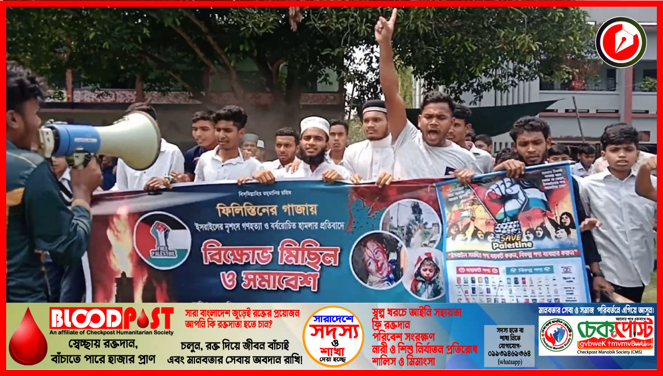 ফিলিস্তিনের গাজা উপত্যকায় ইসরায়েলের অব্যাহত আগ্রাসনের প্রতিবাদে চাঁপাইনবাবগঞ্জে বিক্ষোভ মিছিল ও প্রতিবাদ সমাবেশ অনুষ্ঠিত হয়েছে।
