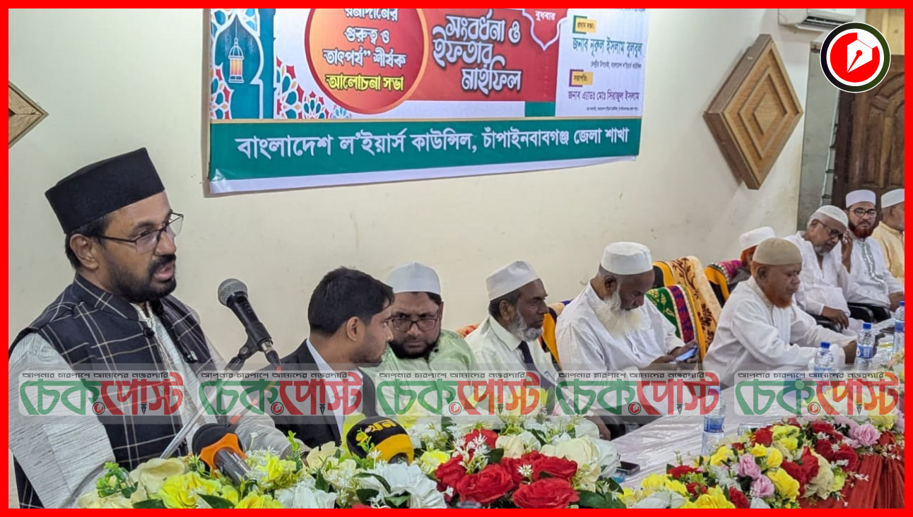 বাংলাদেশ ল'ইয়ার্স কাউন্সিল চাঁপাইনবাবগঞ্জ জেলা শাখার উদ্যোগে "রমাদানের গুরুত্ব ও তাৎপর্য" শীর্ষক আলোচনা সভা, সংবর্ধনা ও ইফতার মাহফিল অনুষ্ঠিত হয়েছে।