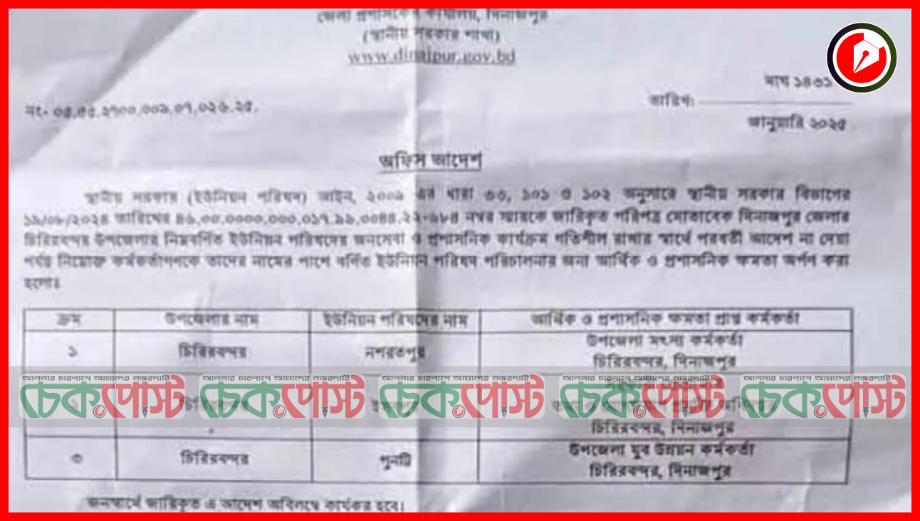 এর প্রেক্ষিতে, ৩০ জানুয়ারি বৃহস্পতিবার, দিনাজপুর জেলা প্রশাসক মো. রফিকুল ইসলাম স্বাক্ষরিত এক নির্দেশনায় এই তিন ইউনিয়নে নতুন প্রশাসক নিয়োগের সিদ্ধান্ত জানানো হয়। স্থানীয় সরকার (ইউনিয়ন পরিষদ) আইন-২০০৯ এর ৩৩, ১০১ ও ১০২ ধারা অনুযায়ী, নতুন নিয়োগপ্রাপ্ত কর্মকর্তাদের আর্থিক ও প্রশাসনিক ক্ষমতা প্রদান করা হয়েছে।