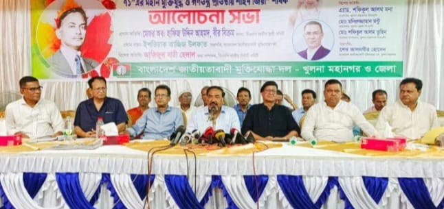 আজ ৯ আগস্ট বেলা ১১টায় খুলনা প্রেসক্লাবের ব্যাংকুয়েট হলে “৭১-এর মহান মুক্তিযুদ্ধ ও গণতন্ত্র প্রতিষ্ঠায় শহীদ জিয়া” শীর্ষক আলোচনা সভায় প্রধান অতিথির বক্তব্যে বিএনপির জাতীয় স্থায়ী কমিটির সদস্য মেজর (অব.) হাফিজ উদ্দিন বীর বিক্রম এসব কথা বলেন। জাতীয়তাবাদী মুক্তিযোদ্ধা দল খুলনা মহানগর ও জেলা শাখা এ সভার আয়োজন করে।