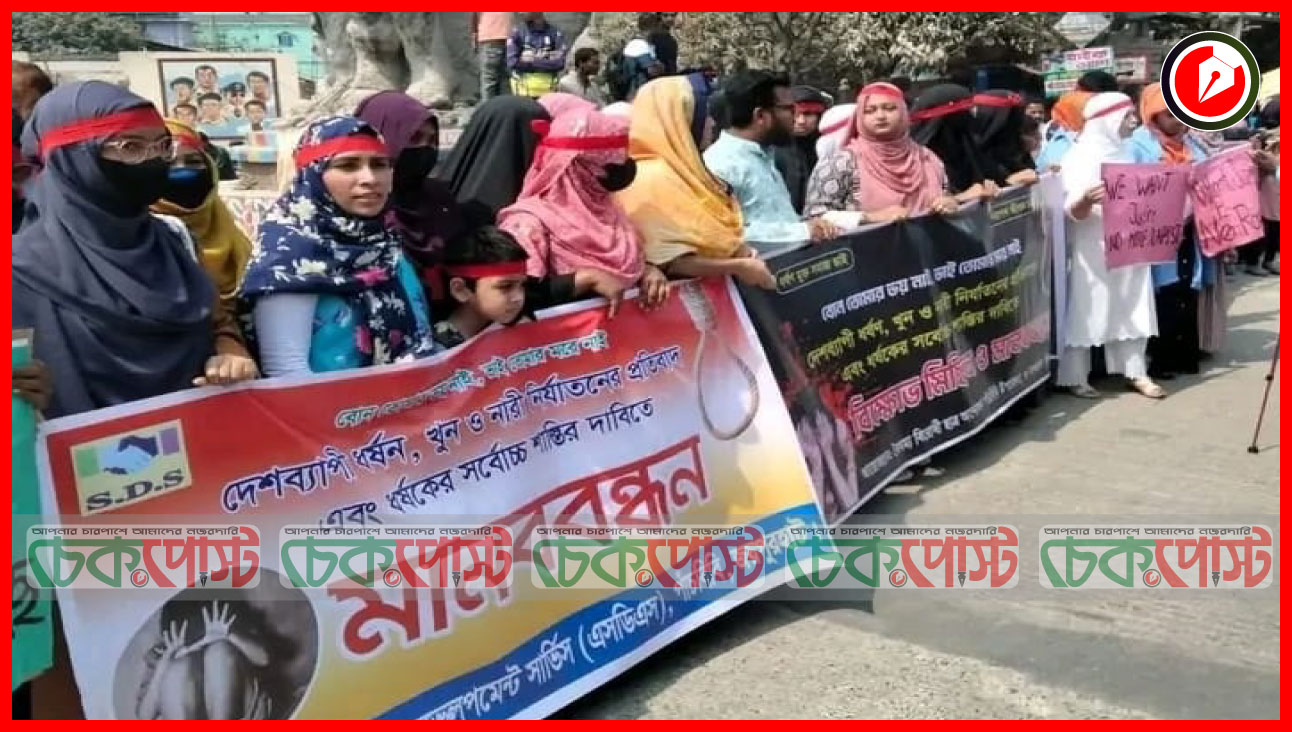 জয়পুরহাটের পাঁচবিবিতে মাগুড়া জেলার আলোচিত শিশু আছিয়াকে ধর্ষণ, খুন ও নারী নির্যাতনের প্রতিবাদে এবং ধর্ষকের সর্বোচ্চ শাস্তির দাবিতে মানববন্ধন অনুষ্ঠিত হয়েছে।