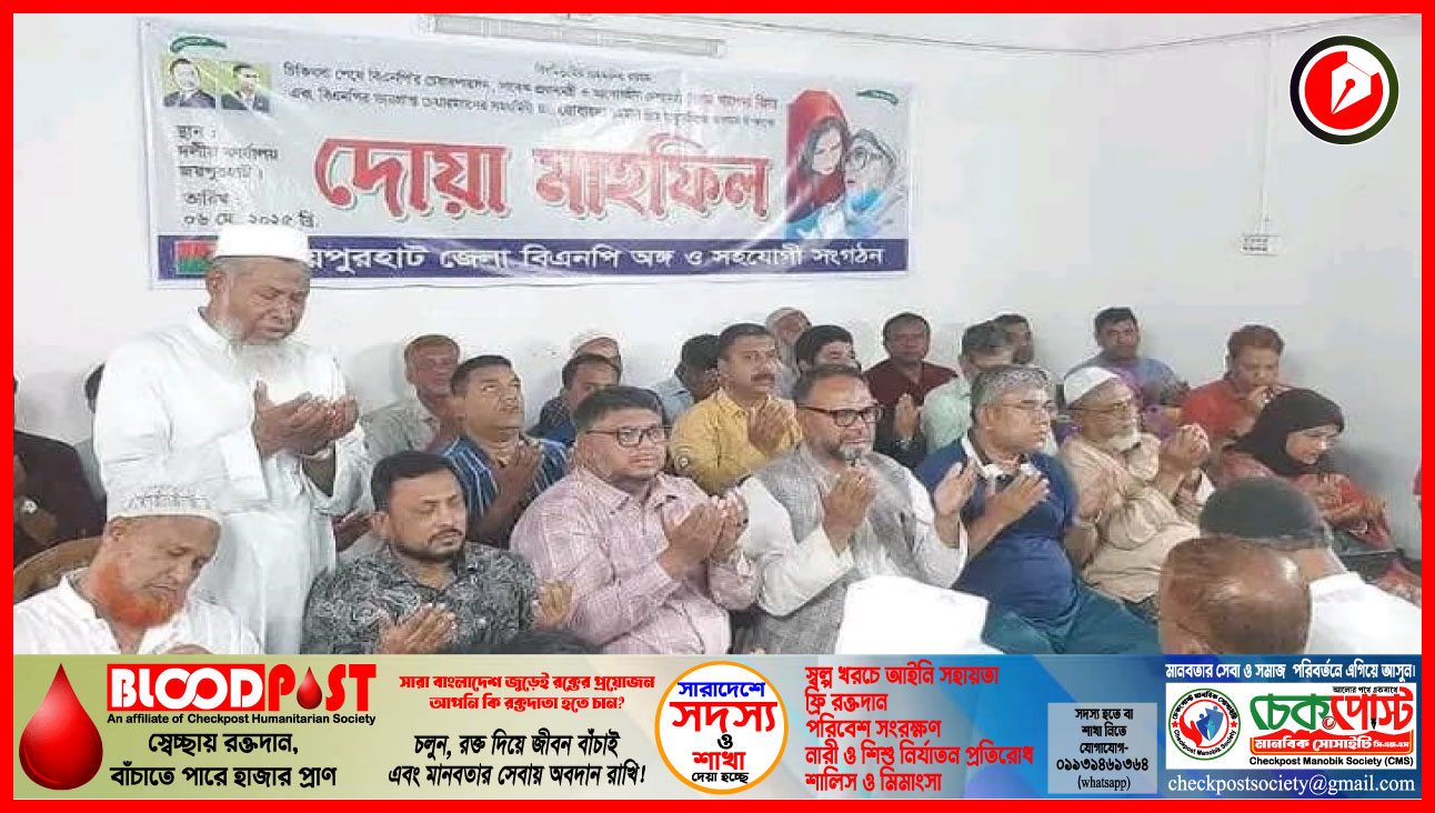 চিকিৎসা শেষে বিএনপি চেয়ারপারসন ও সাবেক প্রধানমন্ত্রী বেগম খালেদা জিয়া এবং দলের ভারপ্রাপ্ত চেয়ারম্যানের সহধর্মিণী ডা. জোবায়দা রহমানের স্বদেশ প্রত্যাবর্তন উপলক্ষে জয়পুরহাটে দোয়া মাহফিল অনুষ্ঠিত হয়েছে।