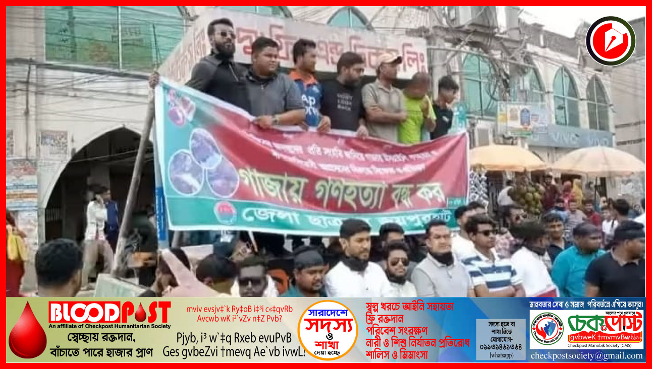 বক্তারা বলেন, “গাজায় নারী-শিশুসহ অসংখ্য নিরীহ মানুষকে নৃশংসভাবে হত্যা করছে ইসরায়েলি বাহিনী। এ হত্যাযজ্ঞ মানবতার বিরুদ্ধে চরম অপরাধ। অবিলম্বে এই গণহত্যা বন্ধ করতে হবে।”