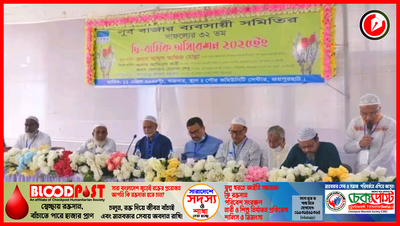 জয়পুরহাট পূর্ব বাজার ব্যবসায়ী সমিতির ৩২তম প্রতিষ্ঠাবার্ষিকী উপলক্ষে দ্বি-বার্ষিক অধিবেশন অনুষ্ঠিত হয়েছে।